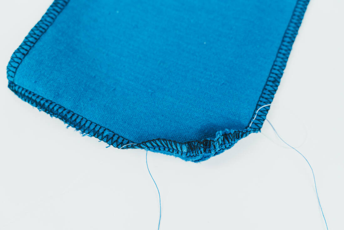 Nähe an der Rundung einige Zentimeter eine Kräuselnaht, damit sich die Nahtzugabe hier besser nach links einschlagen lässt. So geht eine Kräuselnaht: Große Stichlänge, am Anfang und Ende die Fäden lang hängen lassen. Dann ganz leicht am Faden ziehen, so kräuselt sich die Ecke leicht. Bügle dann die Nahtzugabe an den Seiten knapp nach links um, die an die Rundung angrenzen. Die beiden an den Tascheneingriff angrenzenden Nahtzugaben nicht einbügeln. Jetzt ist die Tasche bereit zum Aufnähen!
