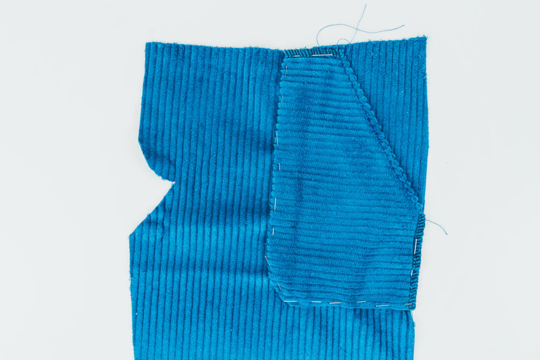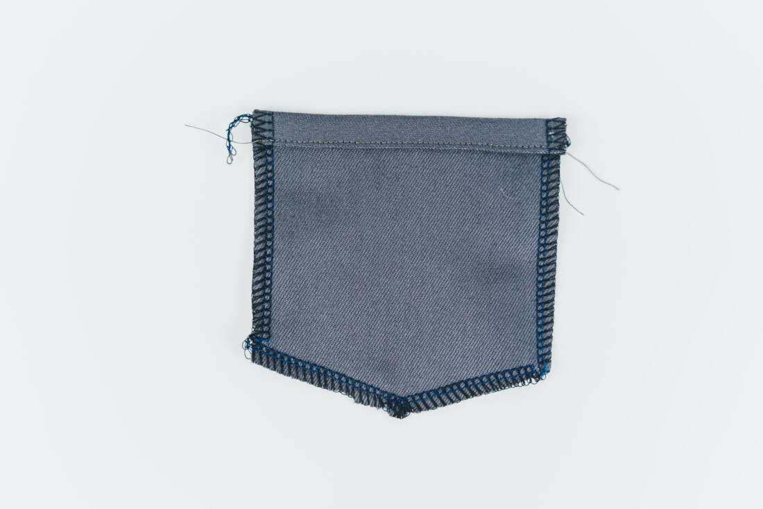 Bügle die Nahtzugabe nach hinten um. Der Tascheneingriff wird doppelt umgeschlagen und mit Geradstich abgesteppt.