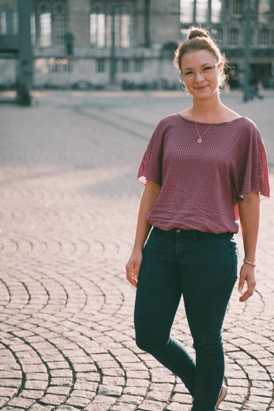 Den integrierten Blitz solltest du nämlich niemals direkt auf eine Person richten, denn das resultierende Bild sieht mit den harten Schlagschatten nicht schön aus. Was deine Bilder in Räumen mit wenig Licht um einiges verbessert ist, den Blitz nach oben zu „biegen“ (die Aufhängung ist flexibel, ihr könnt an der Alpha 6000 nichts kaputt machen) und gegen die Decke zu bouncen. Das Blitzlicht wird über die Decke reflektiert und du hast so eine viel größere Lichtquelle, was das Licht viel weicher werden lässt. Dein Portrait sieht viel schmeichelhafter aus.