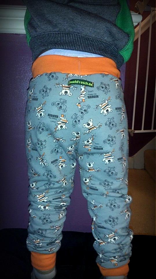 Eine „alte“ Freundin von Katja, OK, nicht alt an sich, aber die zwei kennen sich seit *schluck* das sind ca. ähhhh… 17 Jahre! Ach du Schreck, vielleicht sollte man die “ um das ALT weglassen… Also nochmal: eine … Freundin von Katja die seit einer Weile in/um London lebt (*wink* Hallo Katrin!!!) hat fleißig Blog gelesen, ist uns auf facebook gefolgt und fragte nun ob sie auch eine coole Hose für ihren jüngsten Spross bekommen könnte, der Stoff mit den Koalas wäre so schön.