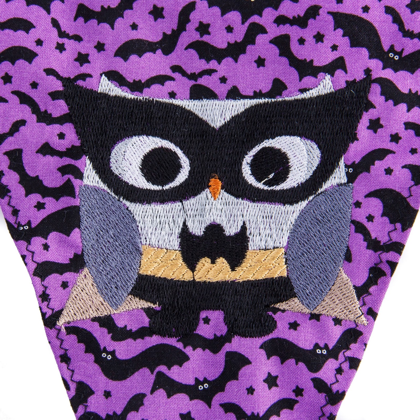 Bei einigen bei RUMS weihnachtet es zum Teil ja schon, bei uns herbstelt es erst mal! Denn vom halloweenigen Stoff des ersten Probenähens war noch ein bisschen was übrig. Und wie ihr wisst hat Katja ja Zuwachs in ihrem Maschinenpark! Nachdem Katja die Unterfadenprobleme gelöst hat (bzw der Nähfroschmanningenieur), wurde ein Testobjekt gestickt, um daraus eine Wimpelkette nähen zu können. Bei etsy gibt es so viele Stickdateien, das ist ja der Wahnsinn! Ausgesucht hat sich Katja für die ersten Versuche 2 Halloween Motive, nämlich einmal die coole Batowl und einen Schriftzug. Aber seht selbst!